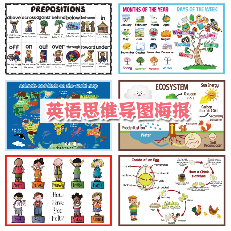 英语海报思维导图主题英文教室装饰贴图教具墙贴幼儿园布置画墙贴