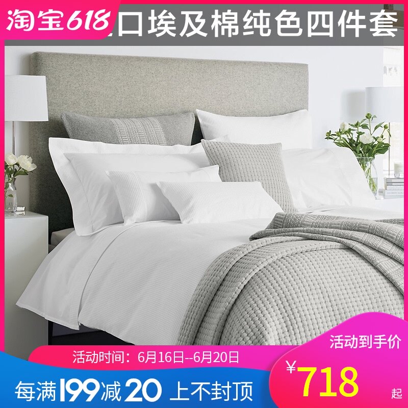 80支埃及长绒纯棉白色四件套 样板房五星级酒店欧式秋冬床上用品