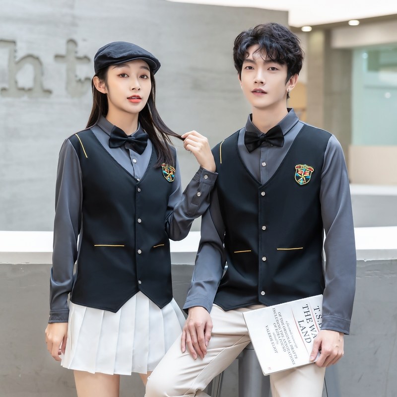 黑色衬衫男方领长袖职业商务正装美发店酒吧服务员工作服套装衬衣热门设计联盟服务商