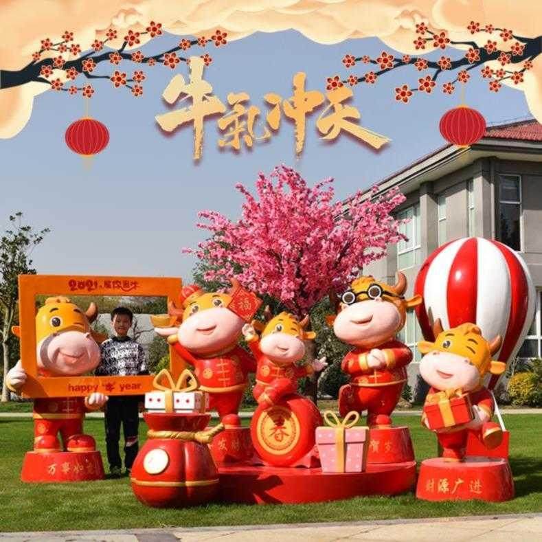 主题金店春节新年布置环境售楼中心耐晒大厅装饰门口牛年道具布景热门设计联盟服务商