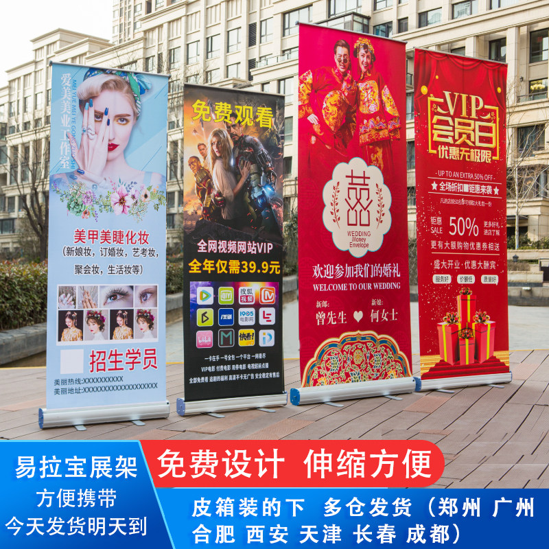 易拉宝展架80x200定做伸缩设计制作折叠广告招聘定制结婚海报防风热门设计联盟服务商