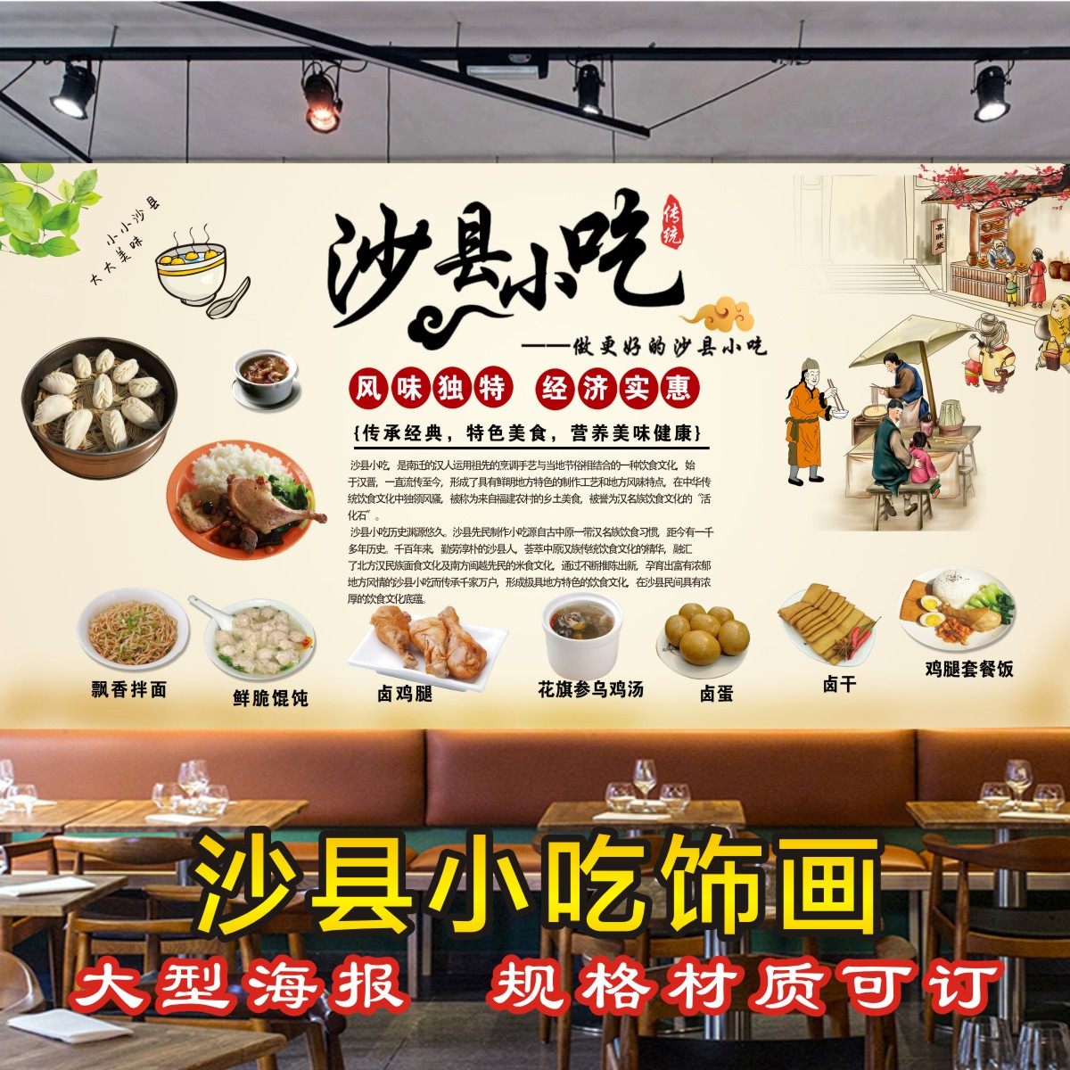 沙县小吃店装修墙纸装饰画餐饮壁画饮食文化广告海报背景图片壁纸热门设计联盟服务商